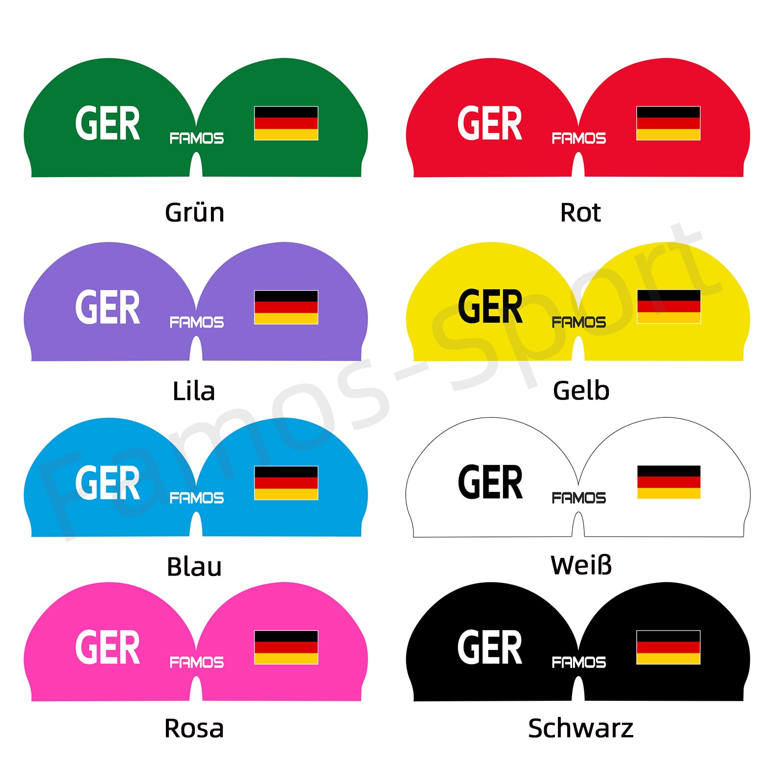 FAMOS 3D Badekappe Nahtlose Schwimmkappe Wettkampf Schwimmkappe Deutschland Flagge GER